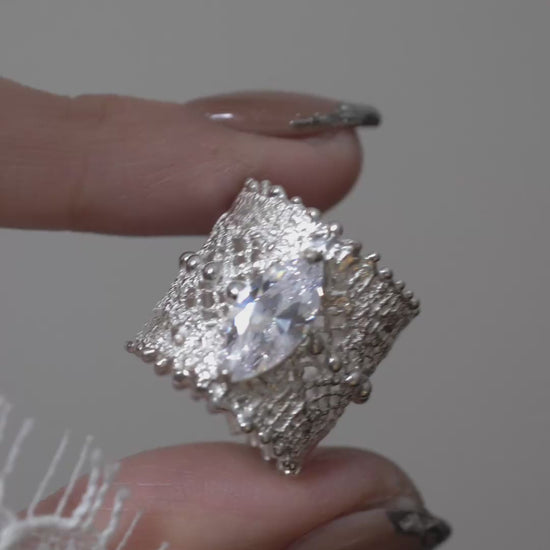 Lace marquise ring